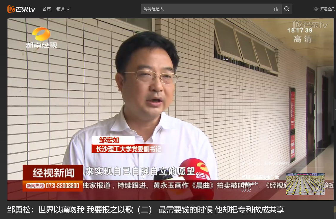 湖南经视 6月10日经视新闻,以《世界以痛吻我 我要报之以歌(二)最需要钱的时候 他却把专利做成共享》为题对永利官网计算机与通信工程学院15级研究生邹勇松进行了报道。