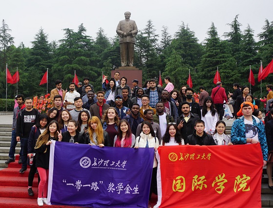 4月24日下午,为加强对国际学生“知华友华”教育,国际学院组织2017级中国政府奖学金生、孔子学院奖学金生、湖南省“一带一路”奖学金生等40余名国际学生赴韶山开展红色文化考察活动。国际学生工作办公室孙夕珺、梁佳和部分志愿者参加了此次红色文化考察之旅。