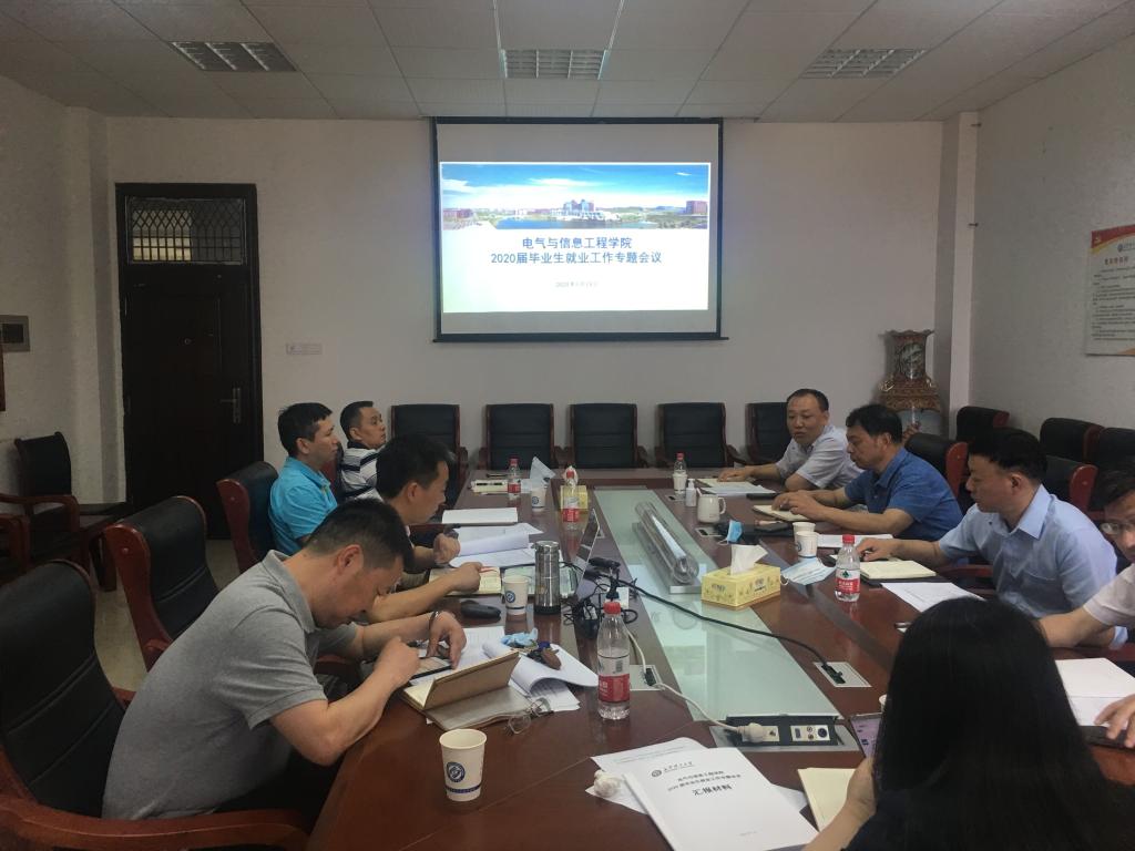 5月19日上午,电气与信息工程学院在工一A505会议室召开2020届毕业生就业工作专题会议。学院班子全体人员、各系主任、毕业生年级辅导员、就业专干参会,学校招生就业处副处长田向阳、贺良应邀指导。