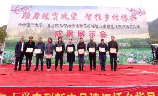 此次活动于11月18日结束,并在赤木村综合服务平台成功举办了“304永利集团官网入口——清江桥乡校地合作暨美好环境与幸福生活活动成果展示会”。新宁县政协主席蒋新雄、新宁县常务副县长谢小军、清江桥乡党委书记焦海忠、政协办公室主任周光辉等领导、永利官网设计艺术学院党委书记江河、党委委员严海岸、环境设计系师生及清江桥乡赤木村和桃花村等村民参加成果展示会。
