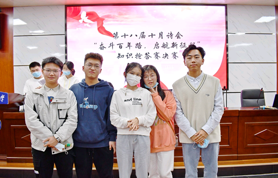 112,第十八届十月诗会“奋斗百年路,启航新征程”知识抢答赛决赛于金盆岭校区举行。电气学院的选手们击败其他五支队伍,夺得桂冠