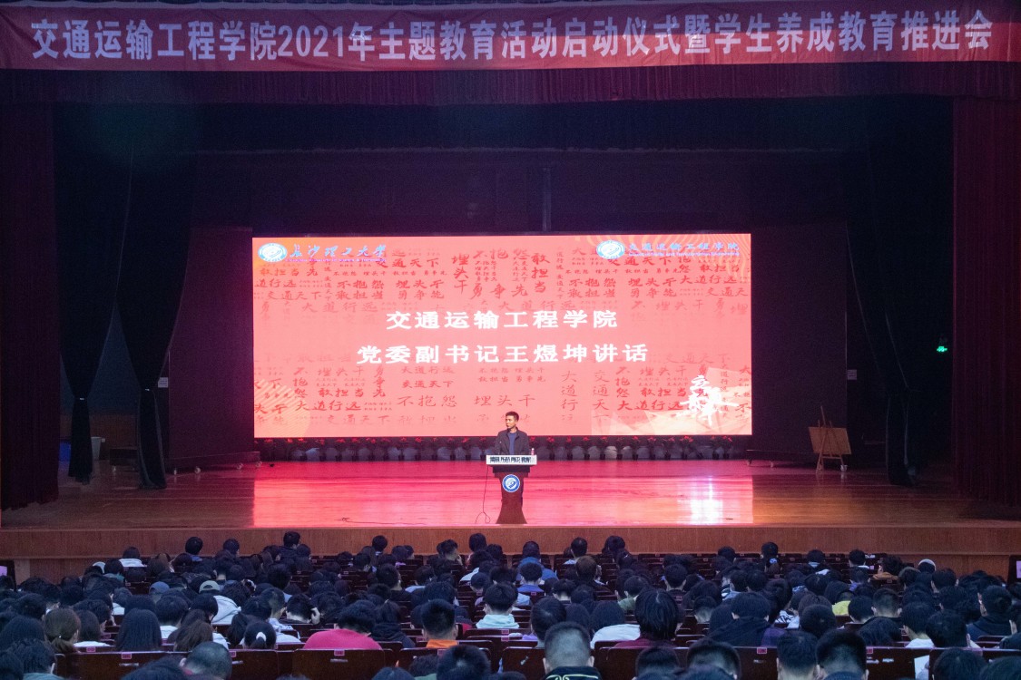 4月8日晚,交通学院于云塘校区大会堂举行2021年主题教育启动仪式暨学生养成教育推进会。此次会议由交通学院团委书记彭笠主持,交通学院党委书记孔伟红、党委副书记王煜坤、全体学工办老师出席会议,2017级、2018级、2019级全体学生与会。