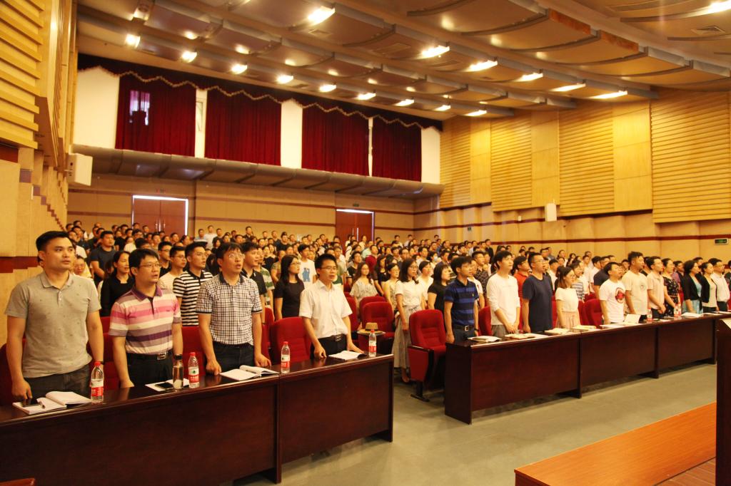 开班仪式在全场齐唱国歌声中开始。2018年湖南省高校教师党支部“双带头人”标兵——高小枚老师代表全体学员发言,她从自身担任支部书记遇到“本领恐慌”讲起,倡议全体学员珍惜机会、认真学习,将学到的知识更好地运用到党建工作中去。