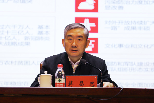 蒋昌忠以《为实现中华民族伟大复兴提供有力保证》为题,紧紧围绕习近平总书记在党的十九届五中全会上的重要讲话精神和全会审议通过的规划《建议》,紧密联系党的十八大以来以习近平同志为核心的党中央团结带领全党全国各族人民走过的伟大历程和取得的举世瞩目成就,深入宣讲中国特色社会主义制度的优势和强大生命力,全面解读和深入阐释2035年远景目标和“十四五”时期我国发展的指导方针、主要目标、重点任务,并密切结合习近平总书记考察湖南重要讲话精神和即将出台的湖南省“十四五”规划《建议》,有针对性地为师生释疑解惑。