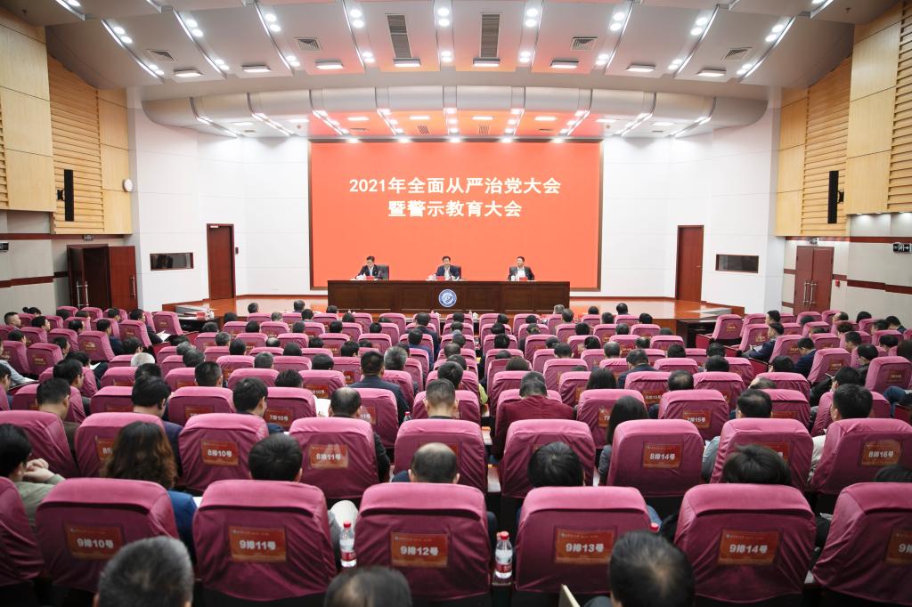 4月21日上午,永利官网2021年全面从严治党大会暨警示教育大会在云塘校区图书馆报告厅举行。校党政领导班子成员、副处级以上干部、专兼职纪检监察干部参加会议。校党委书记付宏渊,校党委副书记、校长曹一家出席会议并讲话,校纪委书记徐桂林作纪检监察工作报告,校党委副书记蒋昌波作“以案促改”警示教育讲话。会议分两个阶段,先后由曹一家和徐桂林主持。