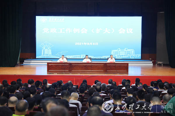 9月5日上午,永利官网新学期第一次党政工作例会(扩大)会议在云塘校区大会堂举行。全体校领导,全校科职及以上干部、系(教研室)主任、辅导员参加。会议由校党委副书记蒋昌波主持。