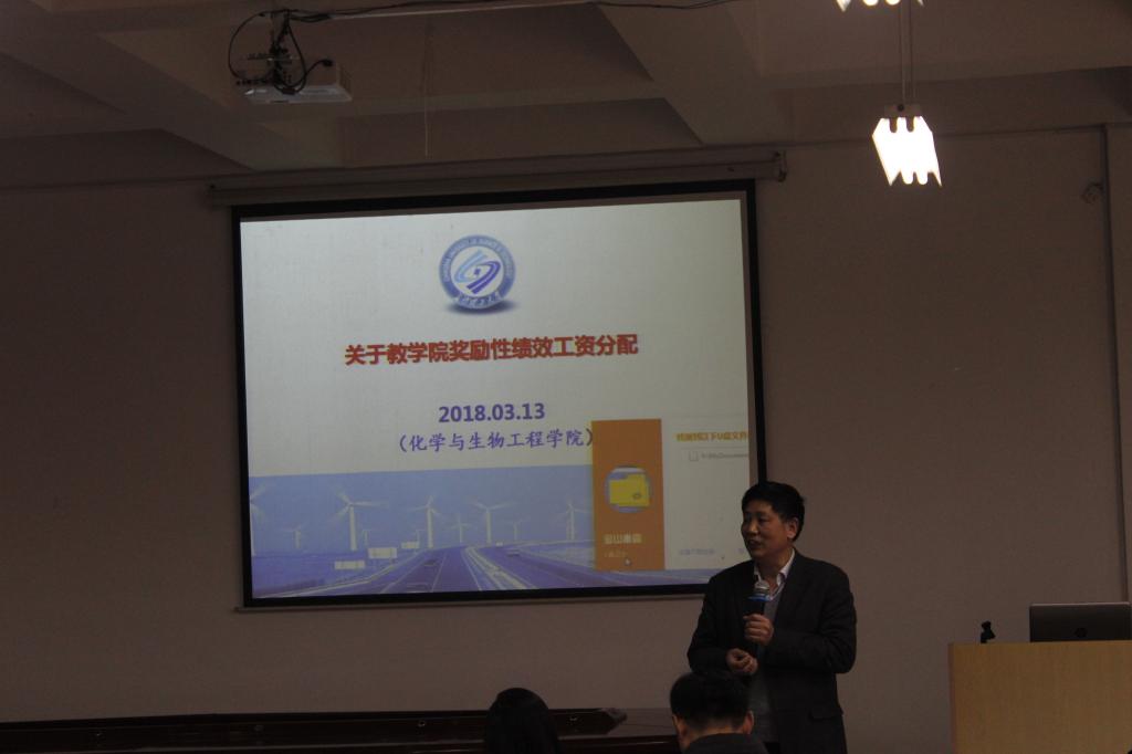 3月13日下午,化学与生物工程学院在工三A320召开新学期首次全体教职工大会,副校长黄立宏,人事处处长杨华峰亲临会议指导,大会由院长杨荣华主持,学院党政班子成员及全体教职工参加。