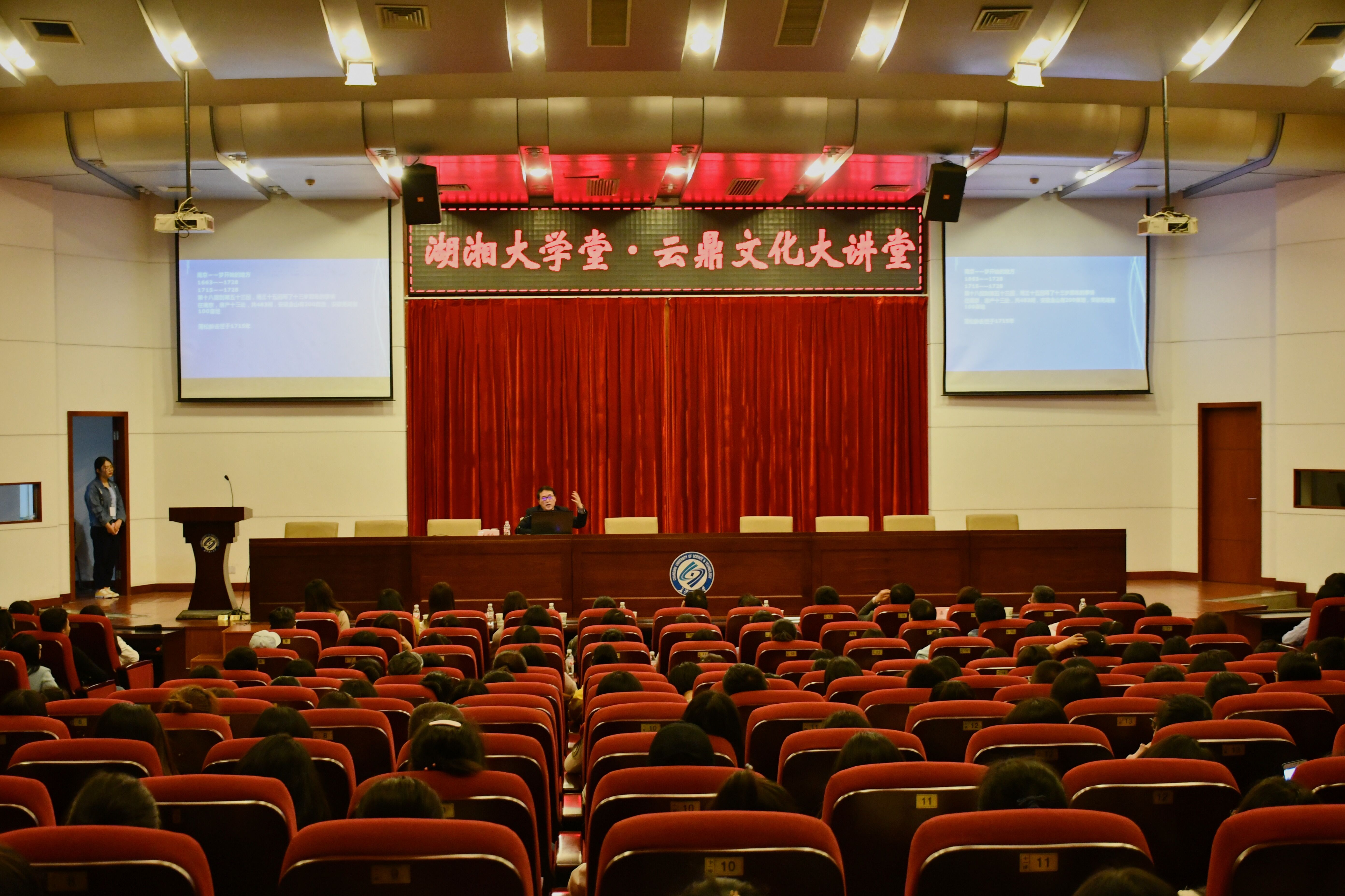 3月28日晚,由党委宣传部、学生工作部(处)、教务处、校团委、文法学院联合主办的“湖湘大学堂·云鼎文化大讲堂”第十一期于图书馆报告厅顺利开讲,我国著名美学家、红学家、战略咨询与策划专家潘知常教授莅临春意盎然的云塘校区诠释《红楼梦为什么这样红》。湖南师大新闻与传播学院李琦教授、湖南大学文学院黄蓉教授、校团委书记陈曦、校党委宣传部副部长成华、文法学院党政班子以及全校师生红学爱好者300余人前来聆听。