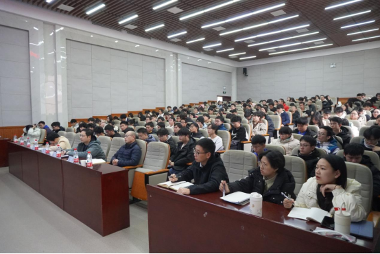 12月24日下午,学校在工科二号楼B301举行基层水利特岗生专题报告会,湖南省水利厅人事处处长宋敏受邀作专题报告。水利学院院长陈杰主持报告会,学院教师和辅导员代表、全体水利特岗生等200余人现场聆听报告。