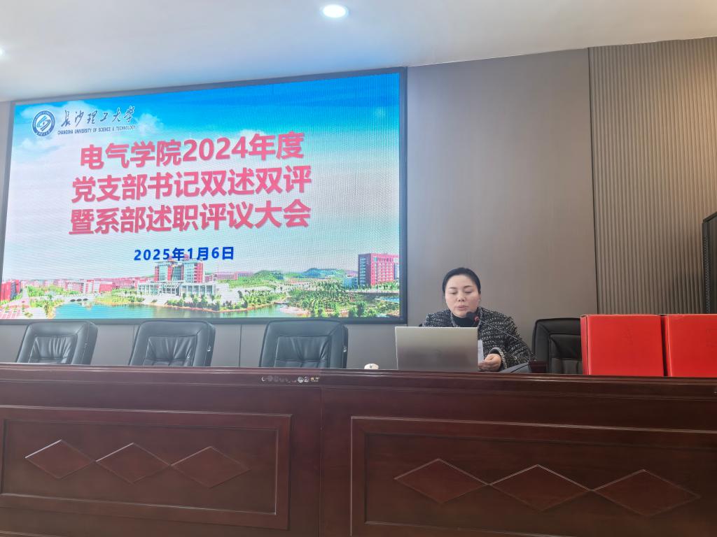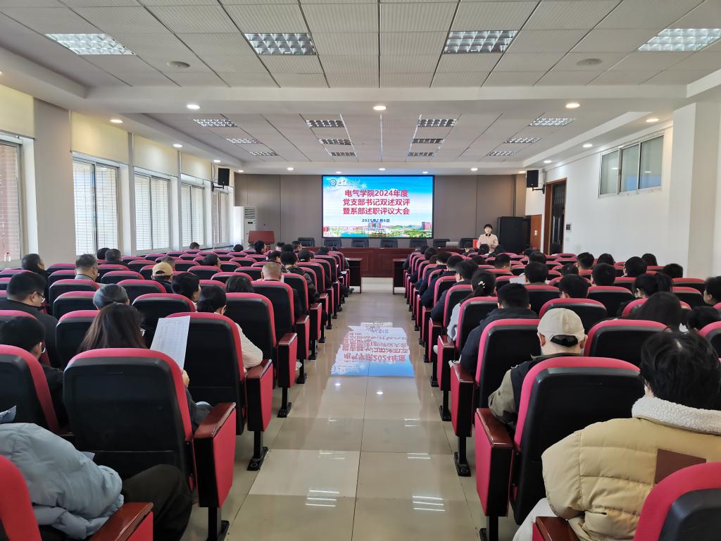 1月6日,电气学院党支部书记双述双评暨系部工作述职评议大会在工一B503报告厅召开。会议由副院长王媛媛主持,院党委书记丁丹出席并讲话,全体院领导及全院教职工参加。