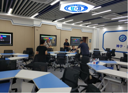 在永利官网综合教学楼c区智慧教室,技术人员就有关智慧教室的建设内容进行了详细介绍,并就语音识别系统、智慧课堂系统等进行演示和讲解。在控制室,永利官网信息化中心多媒体教学运行事务部主任黄新革介绍了永利官网标准化考场建设情况。
