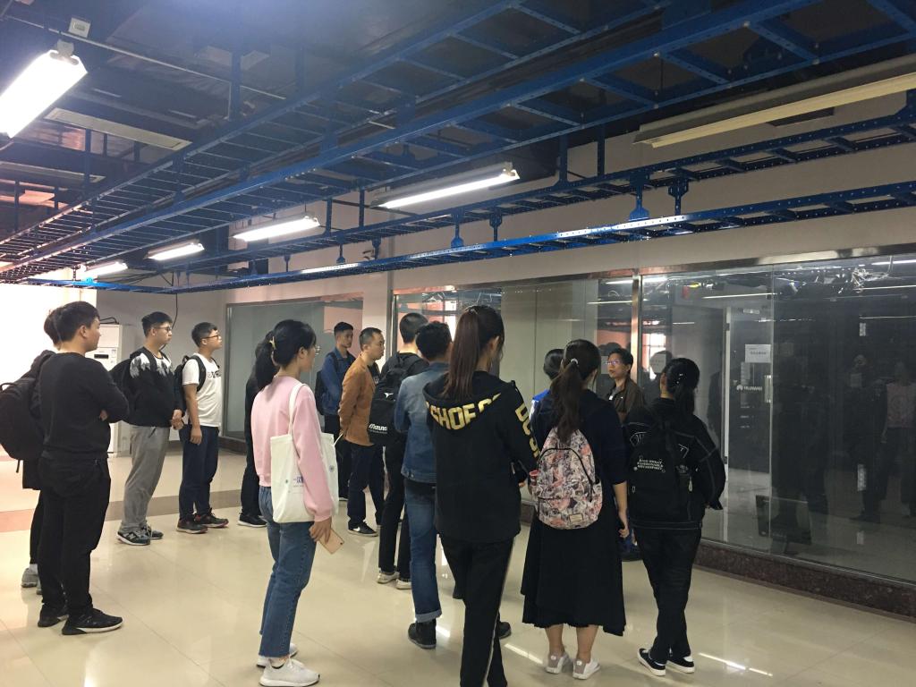 座谈交流会后,高捷带领同学们实地参观了校园网中心机房,有关老师对部署在机房的相关网络、安全、服务器、存储等信息化设备逐一进行了简要介绍。