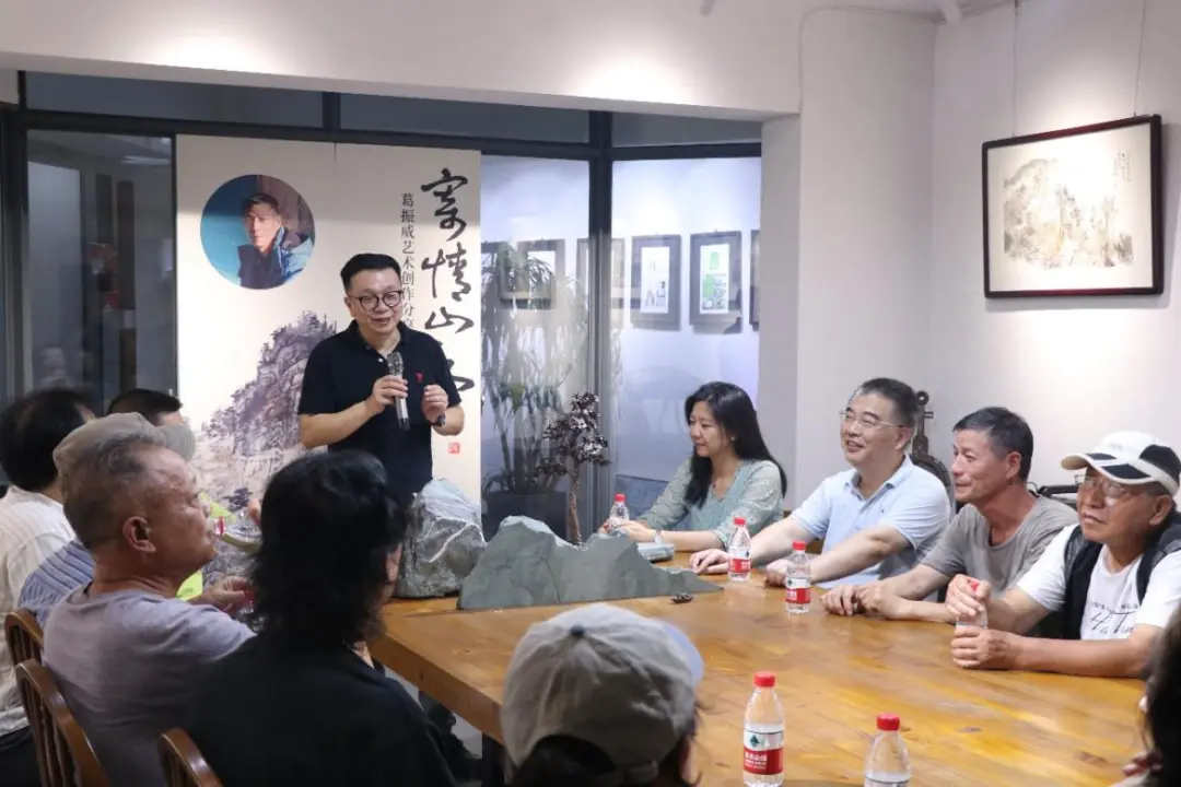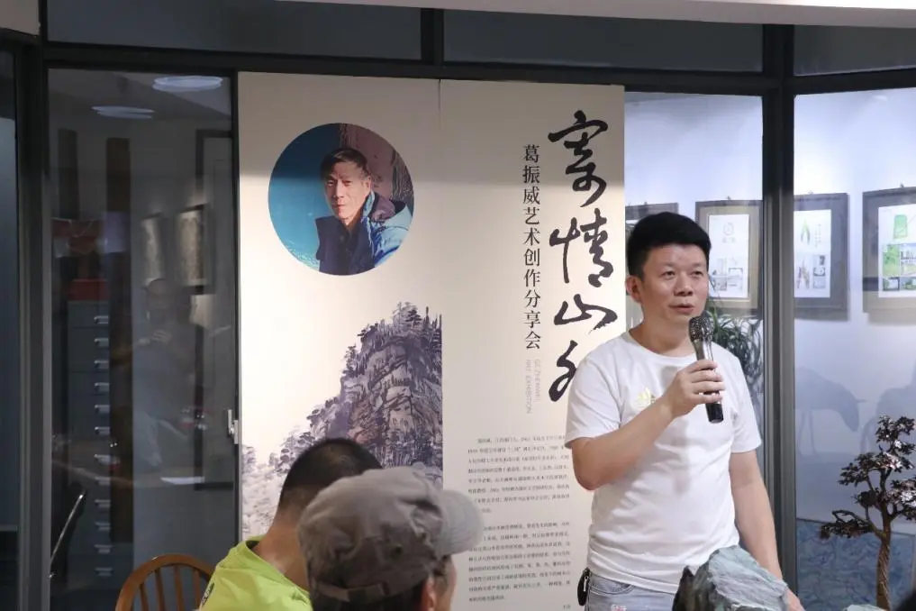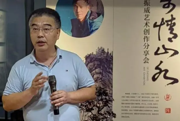 本次展览的艺术家、80 级校友葛振威先生致辞,他表示非常感谢各位老师、校友和嘉宾能参与此次分享会,长理的校友会遍布全国各地,有着专业领先、规模庞大凝聚力强这三大特点,长沙无论走到哪里都能遇见轻专的校友,长理的校友会有着其他学校的校友会难以比拟的向心力和凝聚力。感谢校友会的成员组织的这次活动,再次向大家表示感谢。