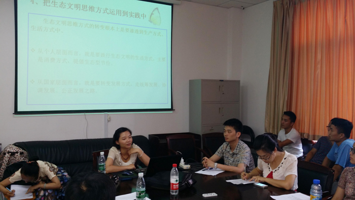 6月29日下午,304永利集团官网入口马克思主义学院2015年第4期“教授博士论坛”在金盆岭校区4教503教室举行。钟芙蓉博士以“转变思维方式,推进生态文明”为主题作了精彩的专题报告。本次论坛由张明海副教授主持,马院2014级研究生参加了此次论坛。