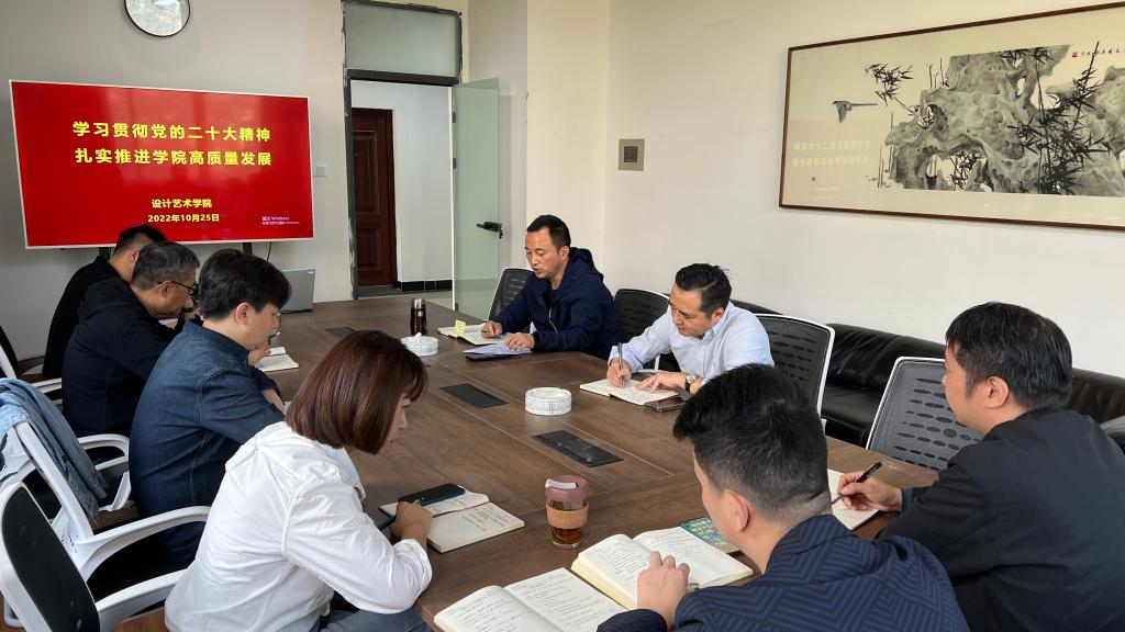 10月25日上午,设计艺术学院党委在艺术楼C317会议室持续集中学习讨论习近平总书记在中国共产党第二十次全国代表大会上的报告。本次学习以“学习贯彻党的二十大精神,扎实推进学院高质量发展”为主题,学院党委书记李伟主持并领学了报告,全体党政班子成员参加学习讨论。